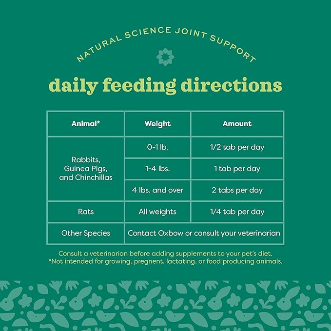 Oxbow Animal Health Natural Science Joint Support, Anti Inflammatory Supplement for Rabbit & Guinea Pig, Oxbow Timothy Hay, Made with Glucosamine, Turmeric, & Yucca, Made in USA, 4.2 oz Bag