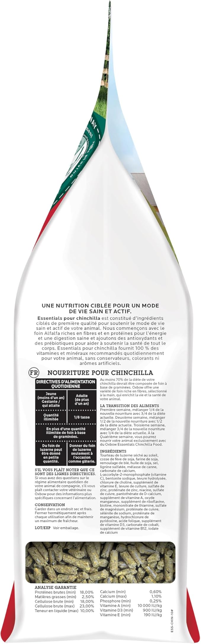 - ESSENTIAL INGREDIENTS FOR A HEALTHY, ACTIVE LIFESTYLE: Crafted with high-fiber, protein-rich Oxbow Alfalfa, this chinchilla food supports healthy digestion and sustained energy—fueling growth, play, and activity for chinchillas at every life stage