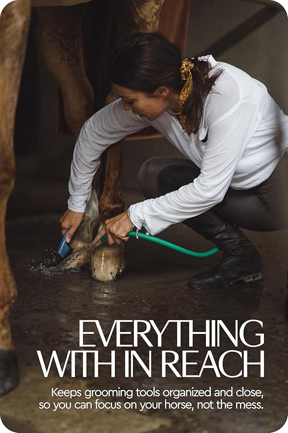 - More Than Just a Grooming Box: This grooming tote box doubles as a step for when you need one. Thanks to a non-slip surface on the lid you can safely use the box as a step to help groom your horse.