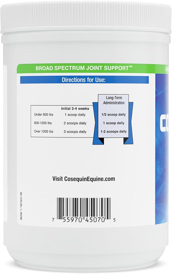 - Joint Health Support for Horses: Cosequin is the #1 veterinarian recommended joint health supplement brand*. This supplement is formulated with glucosamine, chondroitin sulfate, methylsulfonylmethane (MSM), and avocado/soybean unsaponifiables (ASU) to support joint health