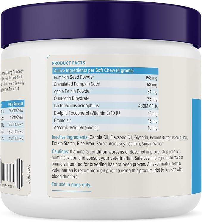 - SUPPORTS HEALTHY ANAL GLANDS: Glandex is scientifically formulated to support healthy anal glands. With key ingredients including pumpkin seed, Glandex promotes natural emptying of the anal glands & supports digestive health & seasonal allergies.