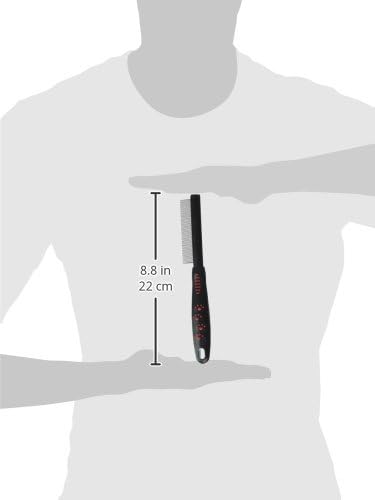 Ryan's Pet Supplies Paw Brothers Flea Comb for Small and Large Dogs and Cats with Handle, Professional Dog Grooming Kit and Supplies, Puppy Essentials, Black and Red, 8.8 Inches