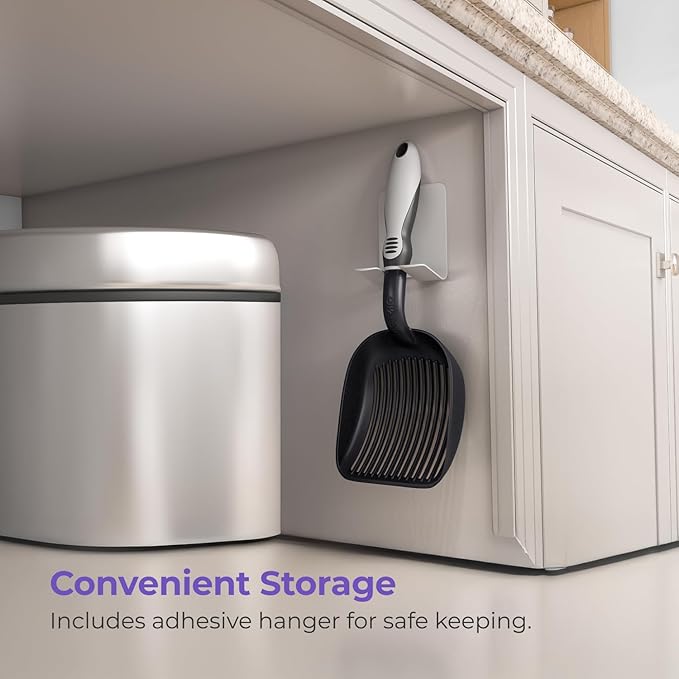 - Convenient Storage: Includes a plastic wall hanger with strong 3M adhesive for easy storage, keeping your metal cat litter scoop within reach and your cleaning space neat, tidy, and well-organized