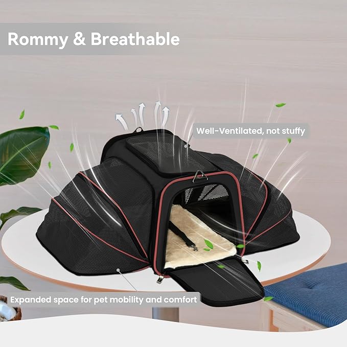 - 【COMFORTABLE SPACE】Extra extended space enable pets sprawl out, lay, see all around and relax when you have a flight trip, also works great in the car, roomy and they lay in it like a bed. Carrier can be folded totally flat when not in use.