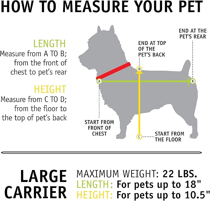 - CHOOSING THE RIGHT SIZE: Choose the perfect carrier size based on your pet's measurements, followed by their weight; make sure not to exceed the maximum weight limit, and allow enough space for your pet to change positions inside the carrier