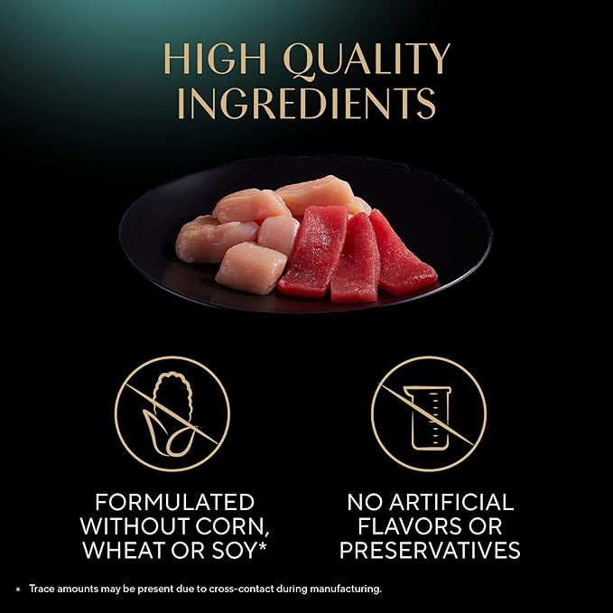 - Delicious Recipe: Sheba Perfect Portions Wet Cat Food Cuts in Gravy is formulated without grains, corn, or soy and contains no artificial flavors or preservatives; although trace amounts may be present due to cross-contact during manufacturing