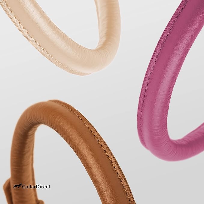 CollarDirect Rolled Leather Dog Collar, Soft Padded Round Puppy Collar, Handmade Genuine Leather Collar Dog Small Large Cat Collars 13 Colors (13-16 Inch, Beige Textured)