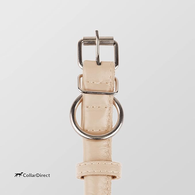 CollarDirect Rolled Leather Dog Collar, Soft Padded Round Puppy Collar, Handmade Genuine Leather Collar Dog Small Large Cat Collars 13 Colors (11-14 Inch, Beige Textured)
