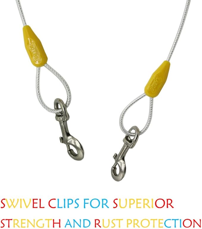- Snaps, which is durable and anti-rust, on both ends can be easily attached to a post or stake for a protection of dog's neck.