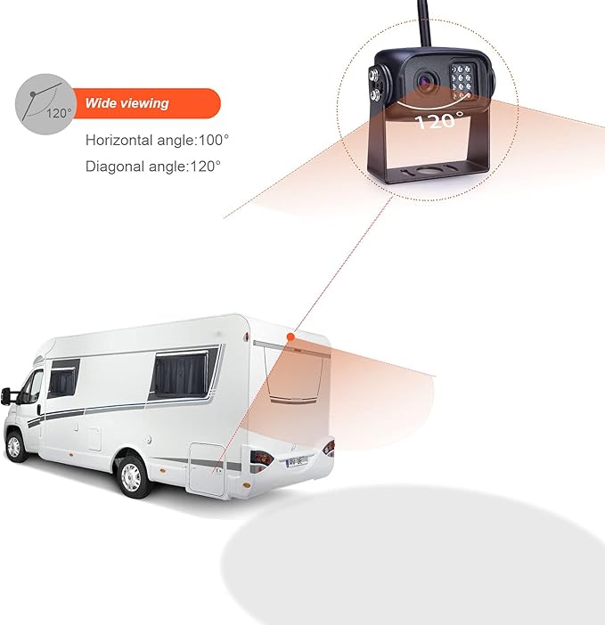 - Wireless reverse camera has good view angle enable to see almost blind spots when you reversing the vehicle, this helpful for you safety driving. Wireless rear view camera is also with high waterproof grade IP69, suitable to use in different environments. Monitor uses IPS screen, driver can see clear picture of camera video at any angle without reflection or blur, sun-shade cover also helps to avoid direct sunlight on monitor.