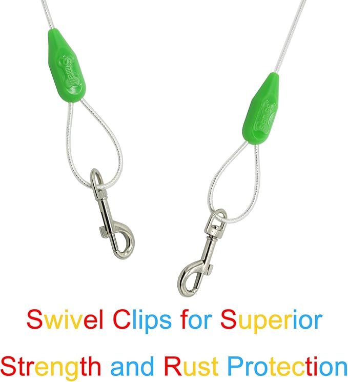 - Snaps, which is durable and anti-rust, on both ends can be easily attached to a post or stake for a protection of dog's neck.