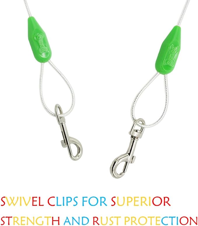 - Snaps, which is durable and anti-rust, on both ends can be easily attached to a post or stake for a protection of dog's neck.