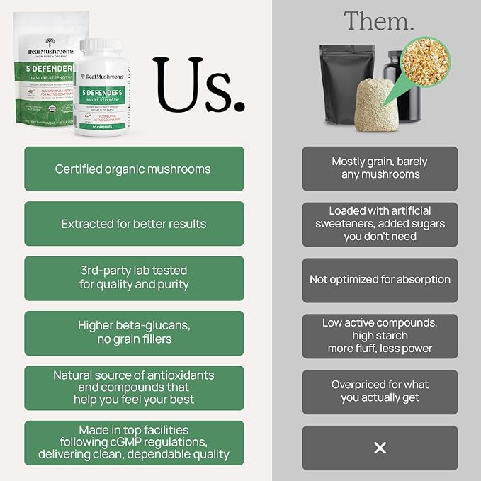 Real Mushrooms 5 Defenders - Adaptogenic Mushrooms Complex with Chaga, Reishi, Turkey Tail, Maitake & Shiitake for Wellness Support - Mushroom Beta Glucan Capsules - 90 Count