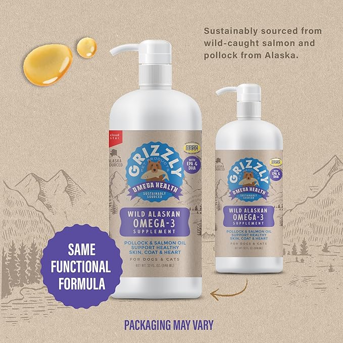 Grizzly Pet Products Omega Health Liquid Omega-3 Supplement for Dogs and Cats, 32 Ounce Bottle