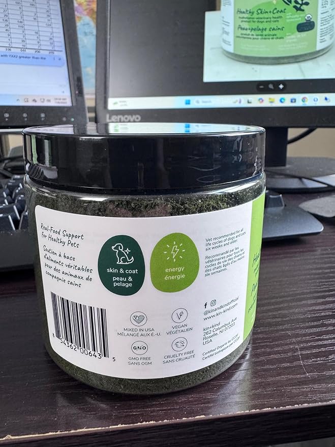 kin+kind Organic Multivitamin for Dogs & Cats - Pet Supplement for Healthy Skin and Coat - Safe, Natural Formula with Wheatgrass, Kelp, Seaweed and Coconut - Made in USA - 8 oz (Large)