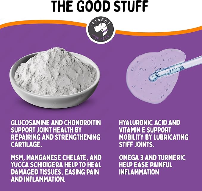 - Delicious and beneficial: Your dog will love the delightful chicken flavor of these chews, and you'll love knowing that every bite delivers vital nutrients necessary to help support and enhance your pet's joint health and overall well-being. Made in the USA in a GMP/FDA facility