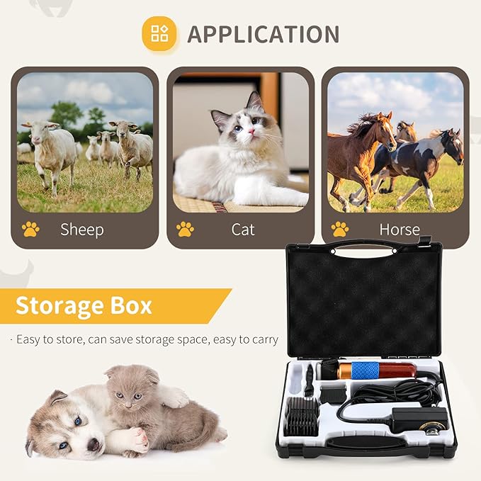- Low Noise & Low Vibration: the working noise of this clipper is about 50dB, which is quiet enough, not to scare the pet. You can also adjust the stepless speed control kob, the slower rotation speed of the motor is, the lower the noise.