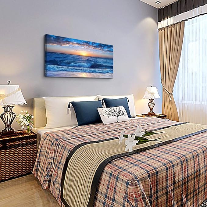 canvas wall art for living room Blue Ocean Sea sun landscape painting bathroom Wall Decor Ready to Hang for Home Decorations office family bedroom kitchen Works canvas Prints pictures 20" x 40"inch