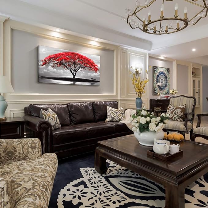 canvas wall art for living room bathroom Wall Decor Black and white landscape red tree moon scenery Hang painting Home Decorations for office bedroom kitchen Works canvas Prints pictures 20" x 40"inch