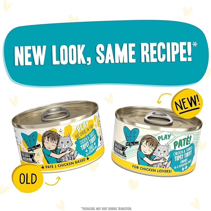 Weruva B.F.F. Play - Best Feline Friend Paté Lovers, Aw Yeah!, Chicken & Turkey Topsy Turvy with Chicken & Turkey, 2.8oz Can (Pack of 12)