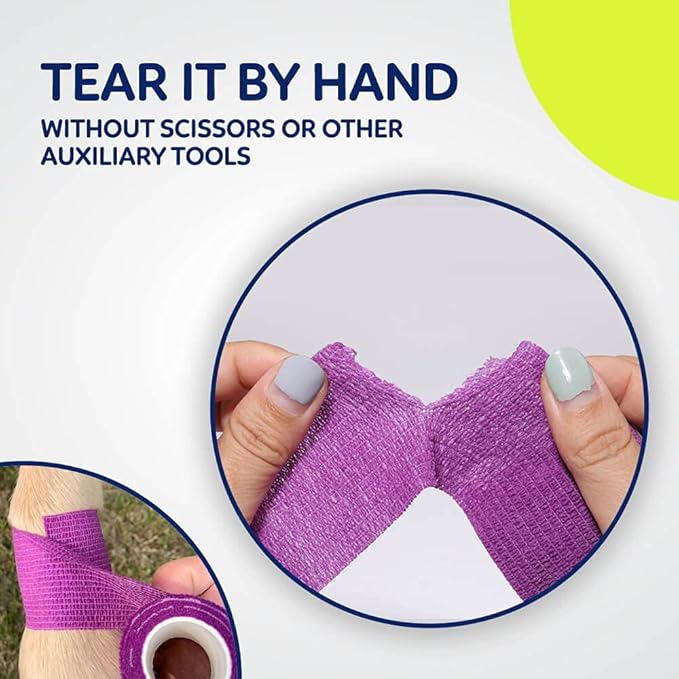 - [LIGHTWEIGHT BREATHABLE MATERIAL]: It is made from natural rubber latex. Porous fabric allows for ventilation so your pet’s skin can breathe freely underneath, which is good for the pet’s skin and helps healing better and faster. Each roll is individually wrapped in clear cellophane, clean and hygienic.