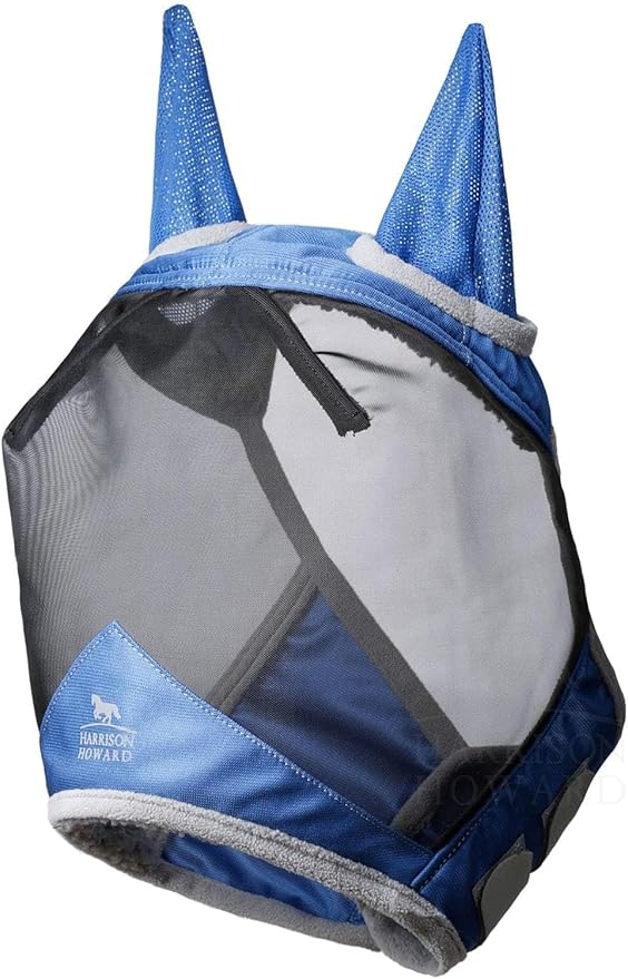 Harrison Howard CareMaster Pro Luminous Horse Fly Mask Large Eye Space Standard with Ears UV Protection for Horse Royal Blue S Pony