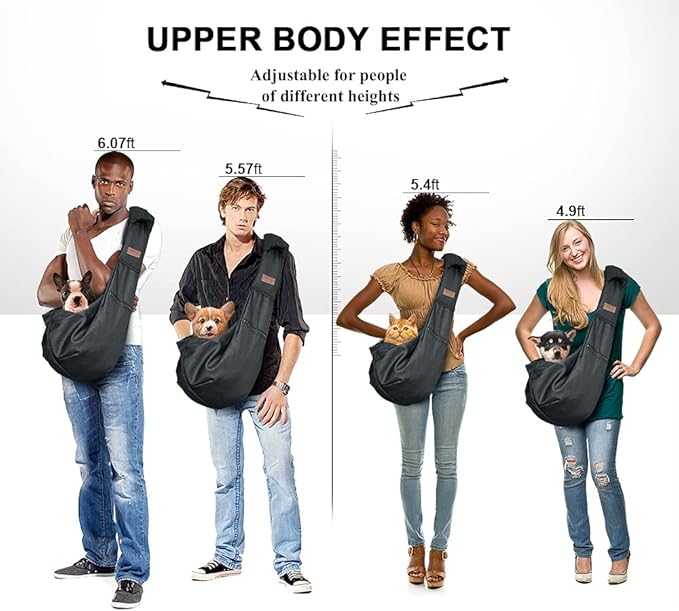 Tomkas Small Dog Sling Carrier - Zipper pocket & Adjustable strap & Zip Pocket - for 8 - 15 lbs pets(Black)Pupppy