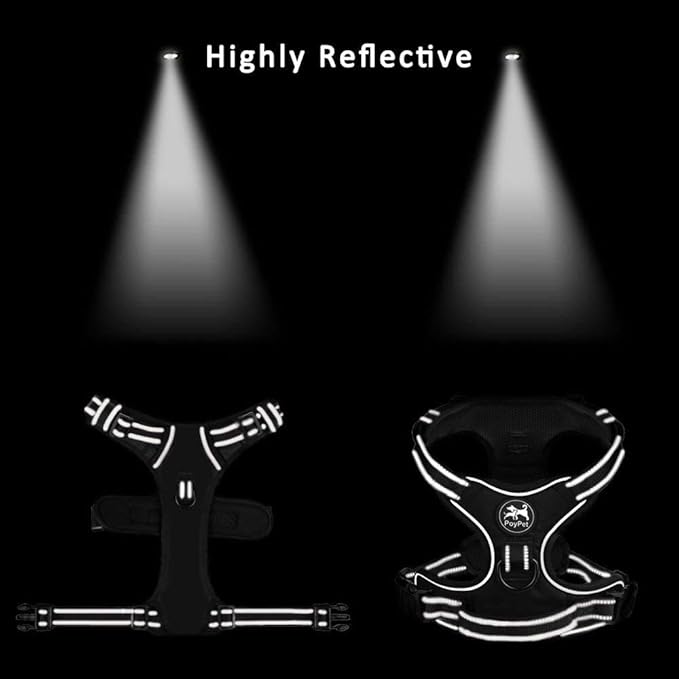 PoyPet No Pull Dog Harness, Reflective Comfortable Vest Harness with Front & Back 2 Leash Attachments and Easy Control Handle Adjustable Soft Padded Pet Vest for Small to Large Dogs (Light Blue,L)