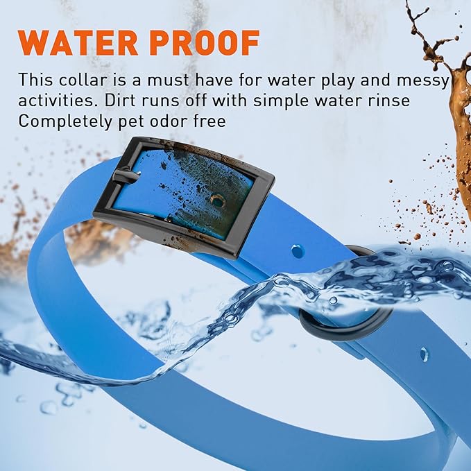 - Free Your Dog to romp in puddles and retrieve from lakes with the Dogline Biothane Waterproof Dog Collar. This water-repellent collar stays dry and odor-free, without shrinking or losing flexibility.