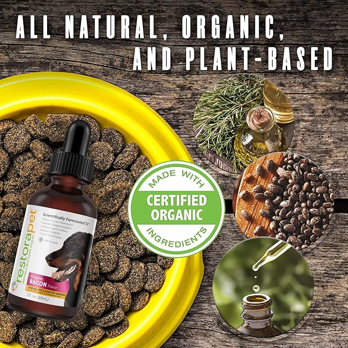 RestoraPet 4-Pack Dog & Cat Bacon Liquid Multivitamin | Dog Arthritis Pain Relief | Hip & Joint Vitamins for Dogs - Anti Inflammatory Supplement for Dogs & Cats | Organic & Non-GMO, Vet Approved