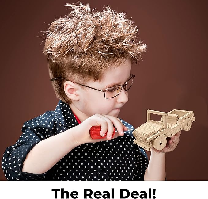 - The Real Deal! Real Wood and Real Tools, Not Just sticking everything together with glue. Wood Pieces are real- not foam or faux wood. Kids will love using the screwdriver and screws to put this together just like adult woodworking!