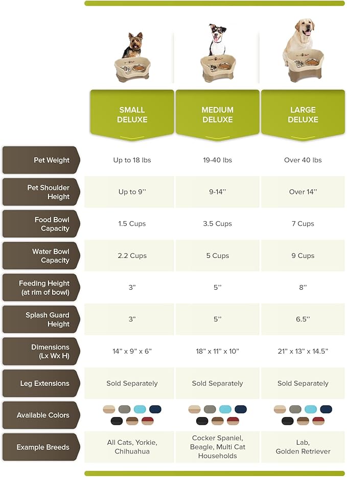 - RAISED DOG BOWLS FOR MEDIUM DOGS: Designed for medium-sized dogs like Beagles, Corgis, and Bulldogs, the Neater Feeder Medium Dog measures 18” L x 11” W x 10” H (with a 5” feeding height). The set includes a 1-cup slow feed bowl for food & a 5-cup extra-capacity water bowl.
