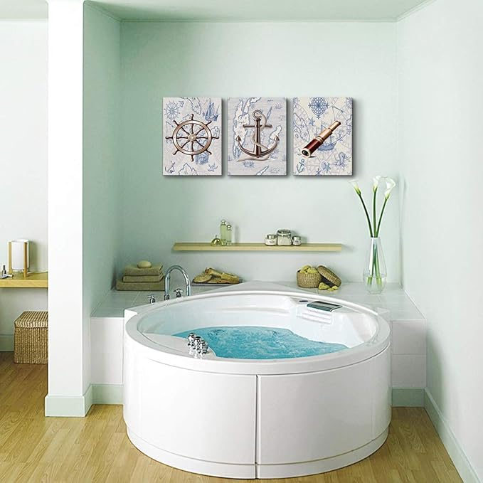 ocean theme steering wheel telescope ship pendant Canvas Prints bathroom Wall Art for Bedroom Wall decor Artworks Pictures wall decorations for living room,3 piece Home decor kitchen wall paintings