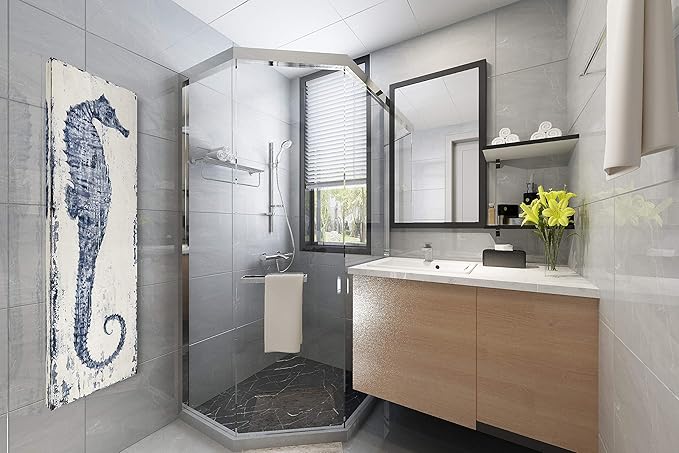 Yihui Arts Ocean Life Theme Bathroom Decor Mediterranean Style Home Canvas Wall Art Watercolor Painting Beach Marine Sea Animal Seahorse Print Framed Stretched Pictures