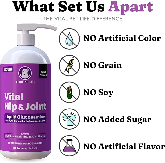 Liquid Glucosamine for Dogs Cats & Horses with Chondroitin, MSM, and Hyaluronic Acid, Hip & Joint Supplement for Mobility & Comfort, Supports Joint Health & Flexibility, Mobility, & Protection, 32 oz