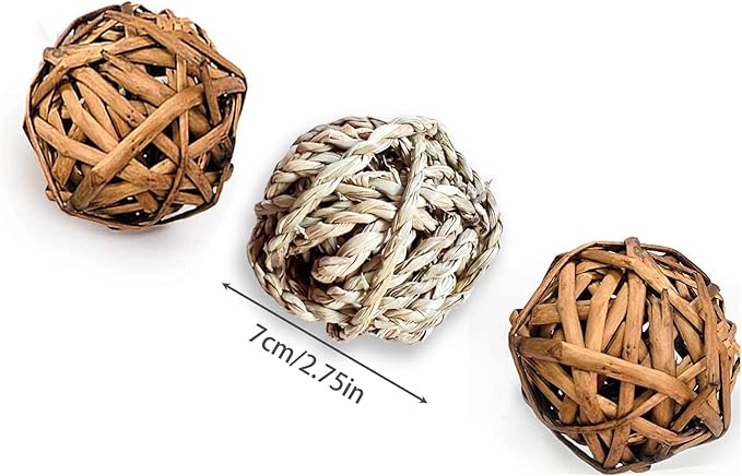 - Rabbit Toys Package Include : You will receive 1 pcs rabbit seagrass mat , 3 pcs rattan balls , 4 pcs carrots. Seagrass mat size :11.8 in × 11.8 in, rattan balls size : 2.72 in, carrot size : 3.9 in long, which will be sufficient for your adorable rabbits or small rodent pets to use and play
