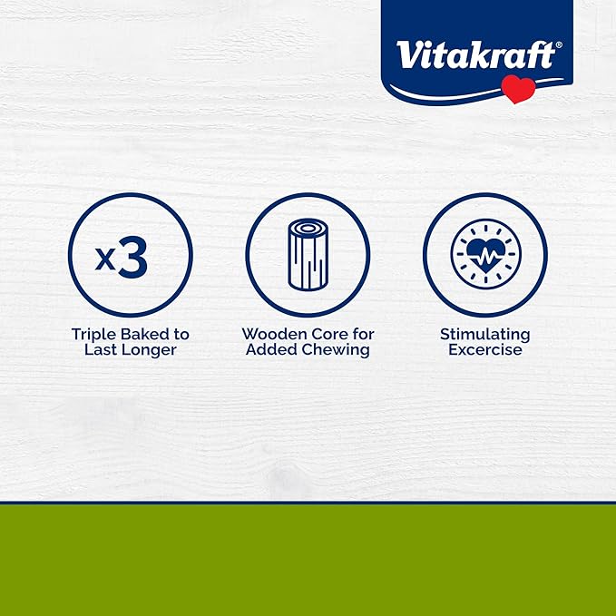 - EXTRA CRUNCHY: Triple-baked around a real wood center for long-lasting chewing fun.