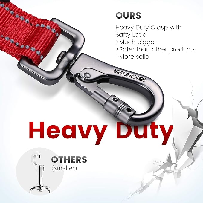 - DURABILITY NYLON MATERIAL AND REFLECTIVE:IOKHEIRA dog leash for large dogs is made of strongest high density webbing to add durability.Our Highly Reflective Dog leash with traffic double handle keeps you both safe and high visibility on your late-evening walks at night.This wear-resistant nylon dog leash is great for medium or large dogs walking, running or training and durable enough to withstand the pulling force of Large pooches up to 200 lb. Suitable for big,medium,small dogs and puppy.