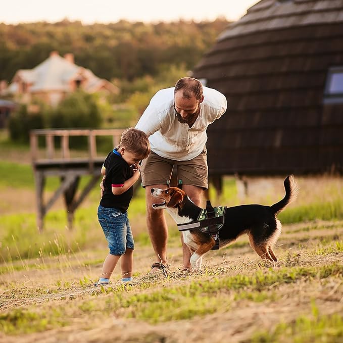 Dogline Dog Harness, Reflective No-Pull Adjustable Vest with Handle for Walking, Training, Breathable, No - Choke Harness for Small, Medium or Large Dogs Room for Patches Girth 18 to 24 in Green Camo