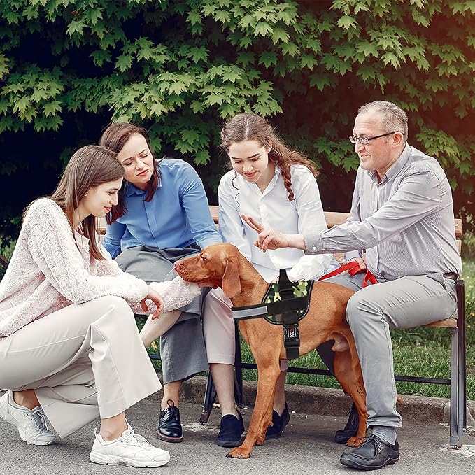 - ADJUST THE SIZE TO YOUR PET’S NEEDS Our Service Dog harness vest is fully adjustable so as to ensure a comfy yet snug fit. Forget about harnesses coming loose. Forget about seams and stitching falling apart. The quick release belly buckle facilitates use to the fullest and the top handle is great for added control and assistance.
