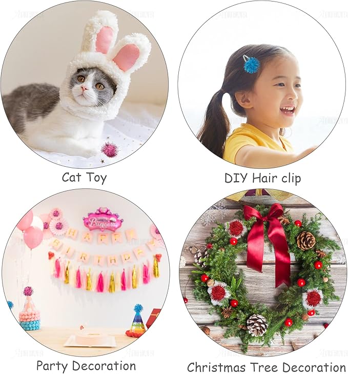 AUEAR, 20 Pack Sparkle Balls 1.5 Inches Tinsel Poms for Cats Pets Assorted Colors