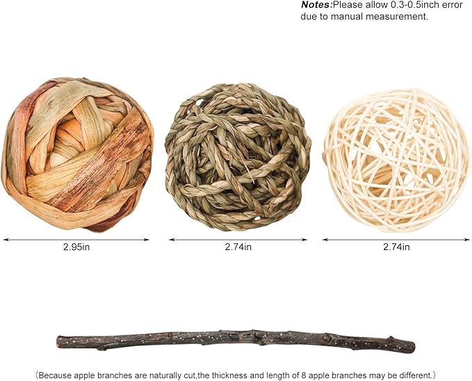 - Suitable for rabbits, bunny, hamsters,gerbils,guinea pigs and other or other rodents. Package includes: 9 pcs pet activity balls and 8 pcs apple sticks.