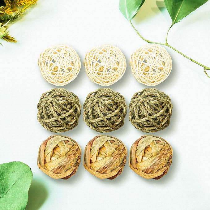 9 Pcs Small Animals Play Balls Rolling Activity Chew Toys Gnawing Treats for Rabbits Guinea Pigs Chinchilla Bunny Natural Balls, Pet Cage Entertainment Accessories (9 Pcs)