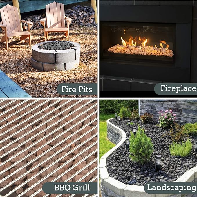 - 【Firebase To Improve Flame Performance】 - These black lava rocks have natural a porous surface, which can help spread the gas dispersion in all directions to improve the flame performance. It works great as a firebase underneath fire glass for fire pit or fireplace. While, it requires very little maintenance.