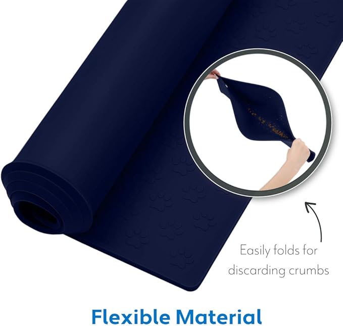 MIGHTY MONKEY 100% Waterproof Dog Food Mat, Raised Edges Silicone Pet Feeding Placemat for Cat, Dogs, Pet Bowls, High Lipped Tray Prevents Water Spills, Food on Floor, Dishwasher Safe, 24x16, Navy
