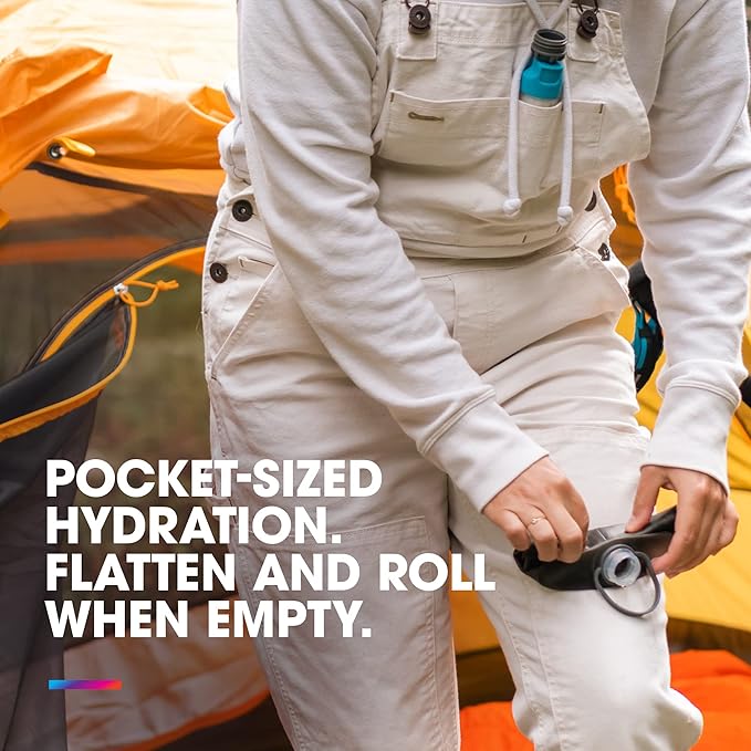 - POCKET SIZED: Flexible bail handle for comfortable carrying, quick attachment, and filling from a faucet, lake or river.