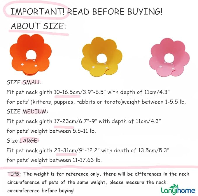 Cat Recovery Collar - Cute Flower Neck Cat Cones After Surgery, Adjustable, Surgery Recovery Elizabethan Collars for Kitten Cats Puppy Rabbits M Size (2pcs)