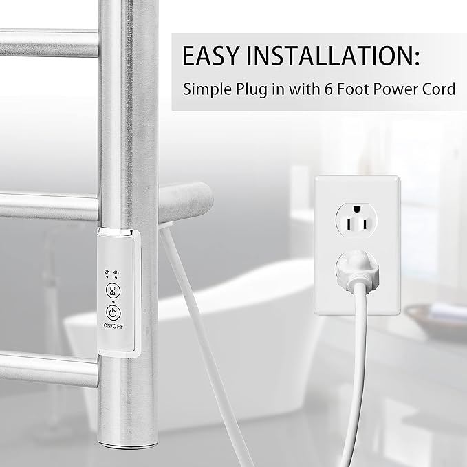- Premium Quality with Elegant Look: The bath towel warmer is made of durable 304 stainless steel, easy to clean and durable use. IP56 Waterproof standard and wall-mounted design maximizes your floor space.