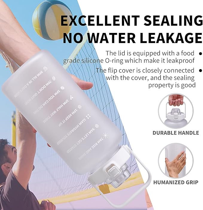 - 💪【Use Note & Purchase Tips】Do not drop it! Not dishwasher safe! Clean it with baking soda and vinegar, Not fill hot water.Not keep water cold. If there is any problem, please contact with us through your order. We will handle it immediately with a best solution for you. Enjoy the reusable tritan gallon water bottle.To be a better you!