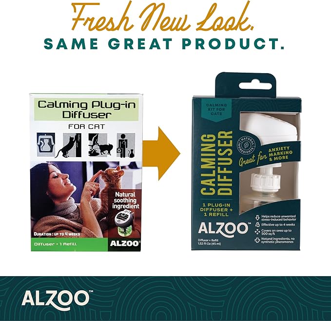 - EFFECTIVE UP TO 4 WEEEKS - Simply plug into an electrical outlet. ALZOO Plant-Based Calming Diffuser covers up to 500 square feet; for the best results, position the diffuser where your cat spends most of their time and avoid plugging the diffuser in under shelves and behind doors, curtains, or furniture.